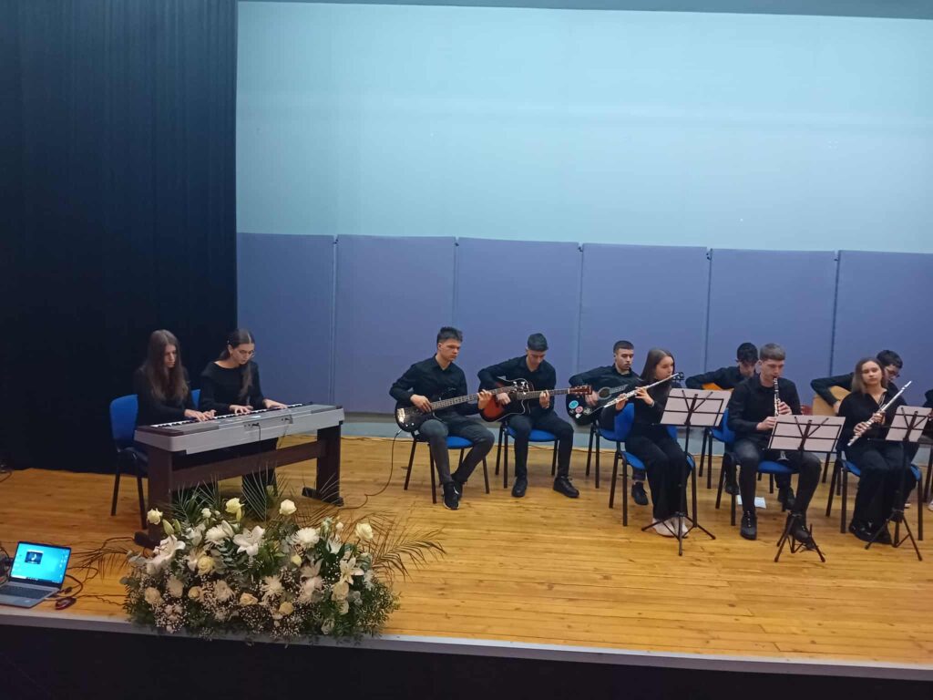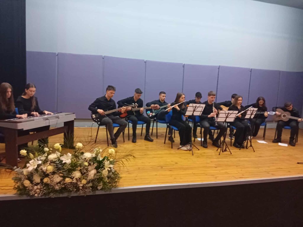 Тие ја интерпретираа поемата „Дениција“ од Петре М. Андреевски и музичката нумера „Пиратите од Карибите“, за што добија силен и искрен аплауз од присутните. Нивниот настап беше достојно претставување на талентот и посветеноста на нашите ученици, кои се гордост на целото училиште.