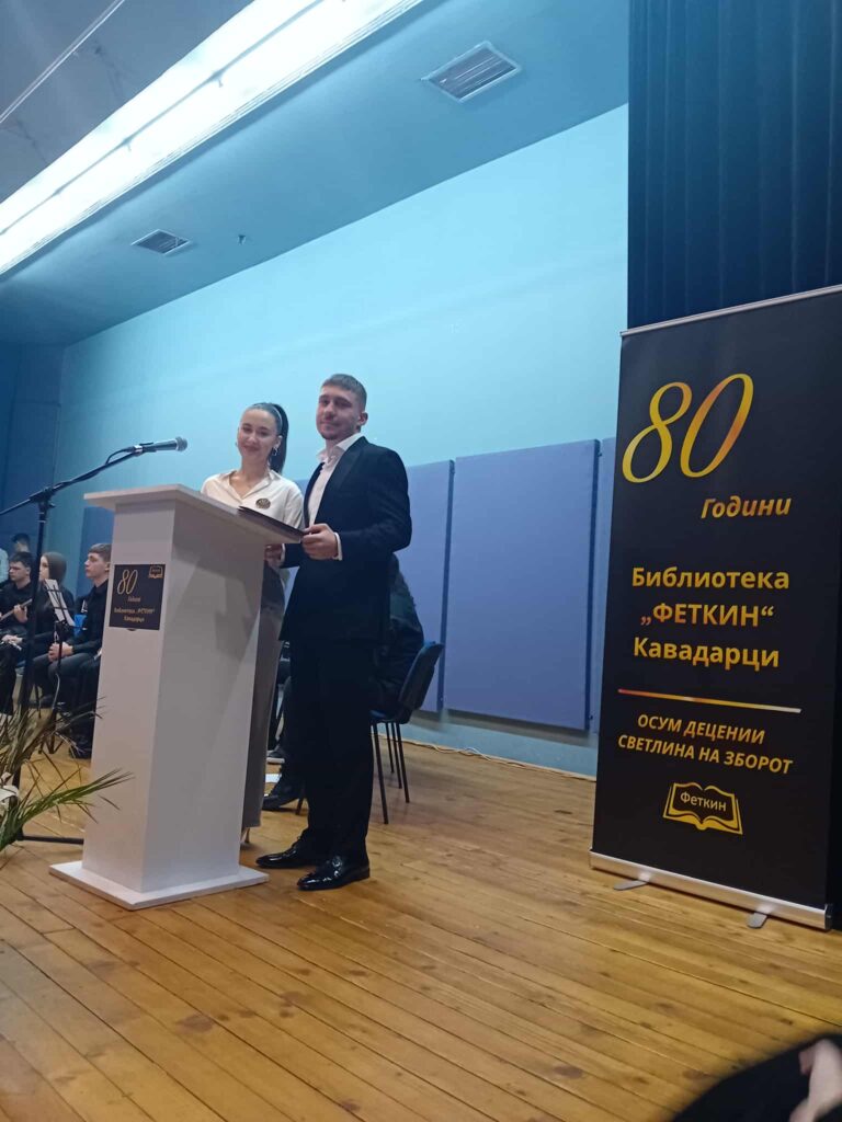 Учениците од драмската секција на СОУ Гимназија „Добри Даскалов“, под менторство на проф. Васка Петкова, заедно со училишниот оркестар под водство на проф. Драган Вељковиќ, зедоа учество на свечената седница по повод 80-годишниот јубилеј на библиотеката „Феткин“ – осум децении светлина на зборот.