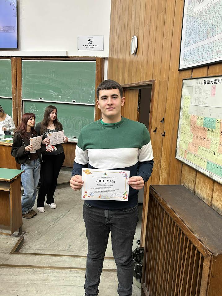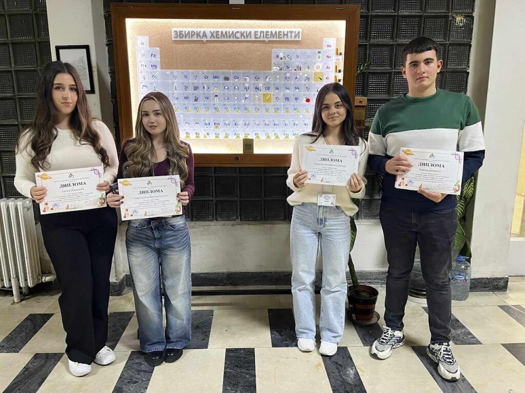 1. Божидар Давидовски од III-5, освоена прва награда од хемија со ментор проф. по хемија Даница Пецова.