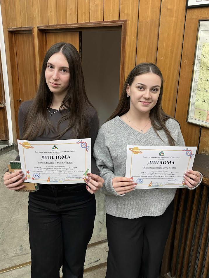 На 29.11.2025 година на Природно – математичкиот факултет  во Скопје на  Институтот за хемија се одржа настанот ,,Ноември – месец на науката” за учениците од средните училишта. На овој натпревар во експерименти и демонстрации, учествуваа  ученици од нашата гимназија и постигнаа одлични резултати: