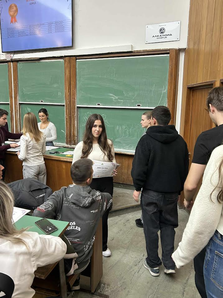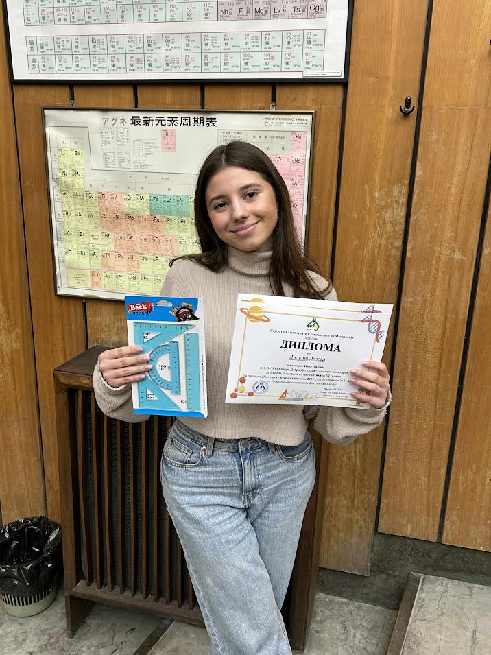 4. Благица Младеновиќ од III-5, освоена трета награда од хемија со ментор проф. по хемија Даница Пецова.
