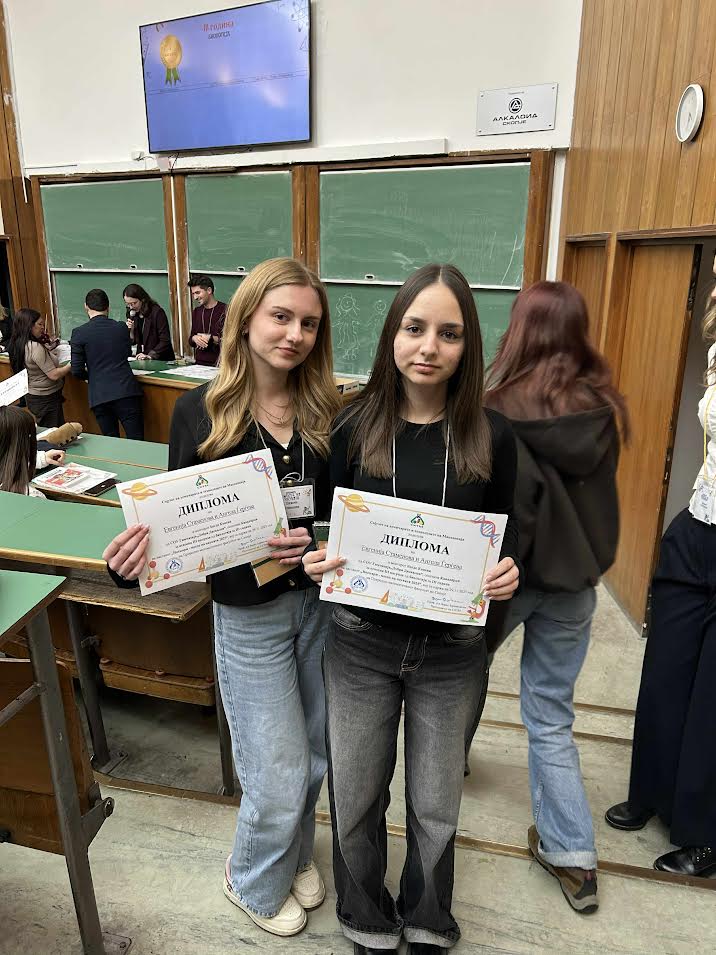 6. Зорана Недева и Матеја Кузева од II-5, освоена трета награда од биологија со ментор проф. по биологија Богде Коцева.