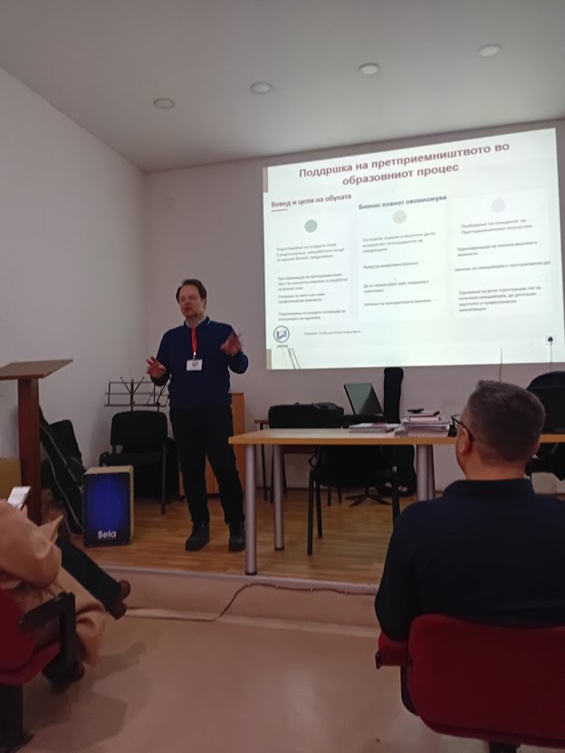 Главен предавач беше проф. Д-р Ристе Темјановски од Економски факултет – Универзитет „Гоце Делчев“-Штип. Тој на учениците им претстави практични насоки за подготовка на бизнис план и ги охрабри да размислуваат иновативно и претприемачки.