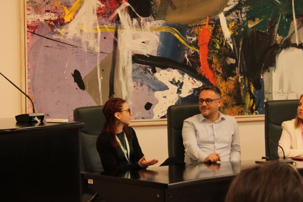 Денес учениците од двете училишта ја посетија општина Кавадарци, каде што г-ѓа Јасминка Чулева, раководител на секторот за образование и спорт, им посака добредојде во Кавадарци и ги запозна со нашата Општина.